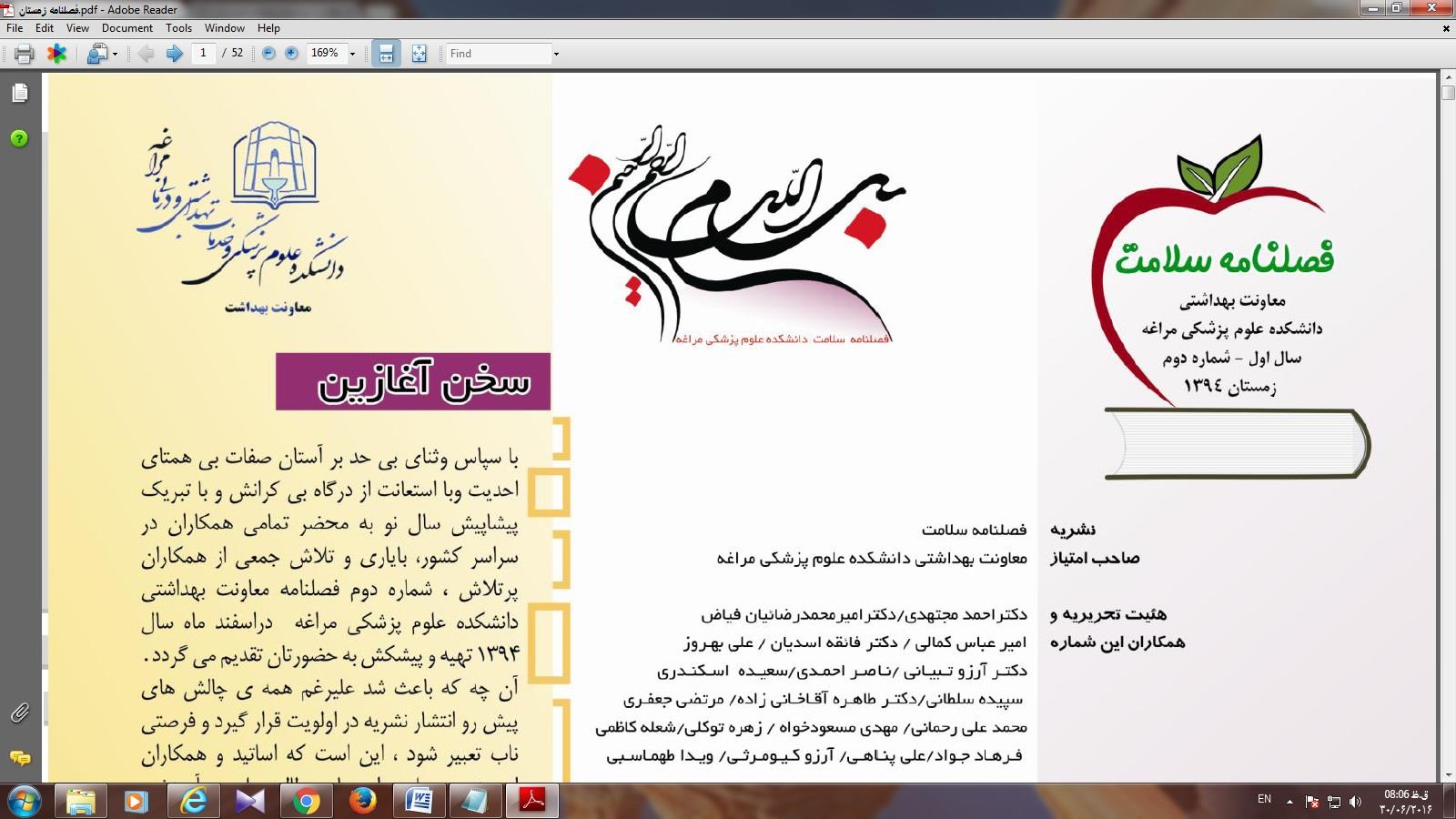 فصلنامه شماره دو معاونت بهداشتی ویژه اسفند ماه با تلاش همکاران حوزه معاونت بهداشتی آماده و چاپ گردیده است